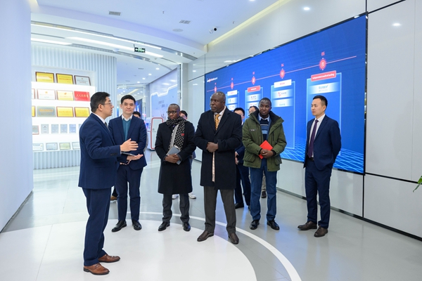 2月24日,肯尼亚驻华大使威利·贝特一行在湖南省中非经贸合作研究会执行秘书长刘闻的陪同下到访圣湘生物长沙总部。