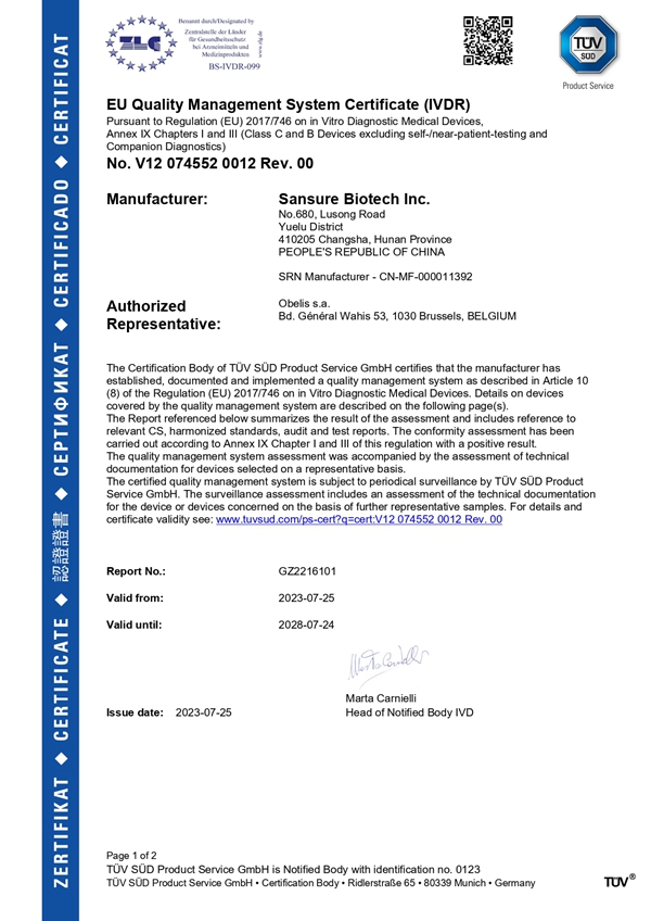 近日,圣湘生物自主研发的结核分枝杆菌核酸检测试剂盒(PCR-荧光探针法)获欧盟CE IVDR认证,这是公司呼吸道产品获得的首个Class C级别的准入证书,为公司结核产品的全球布局提供了有力支持,也为全球在2030年前消灭结核的目标贡献了“圣湘力量”。